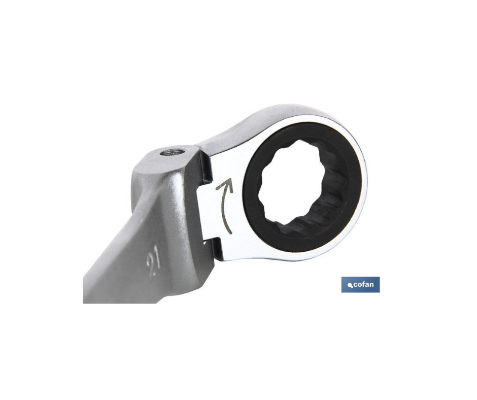 As chaves de cabeça flexível Cofan possuem uma cabeça giratória de 180°.