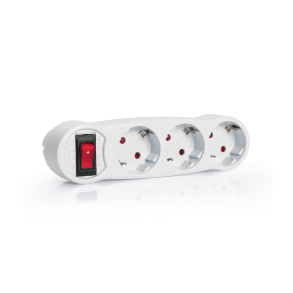 Ficha tripla tipo schuko plana com interruptor da Aslo.