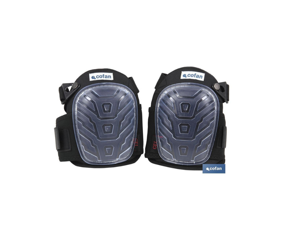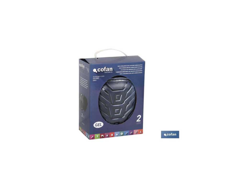 As joelheiras de gel com duplo elástico cofan são ideais para longos períodos de trabalho.