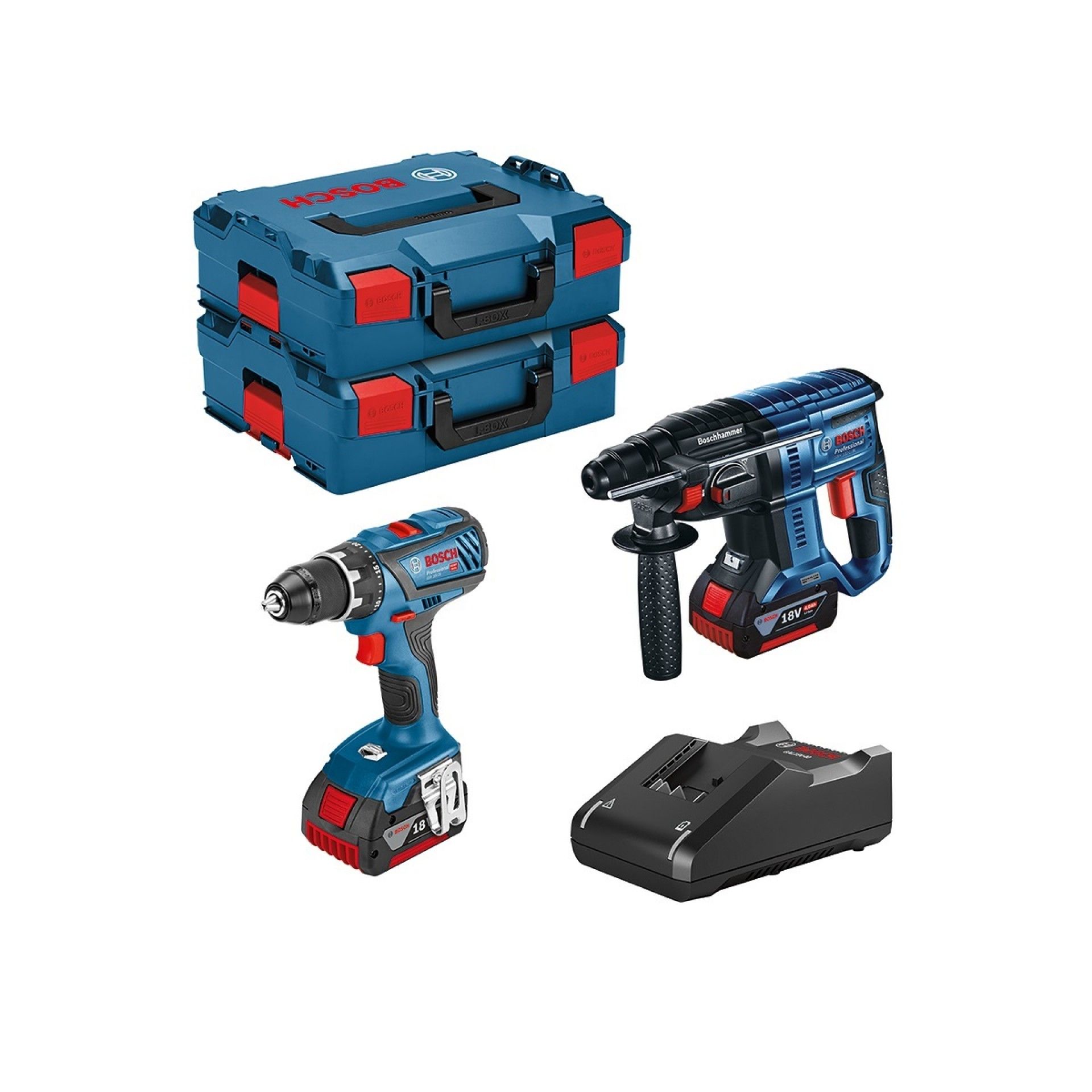 Kit inclui: Aparafusadora 18V, Martelo 18V, 2 malas, 2 Baterias 4.0AH, Carregador