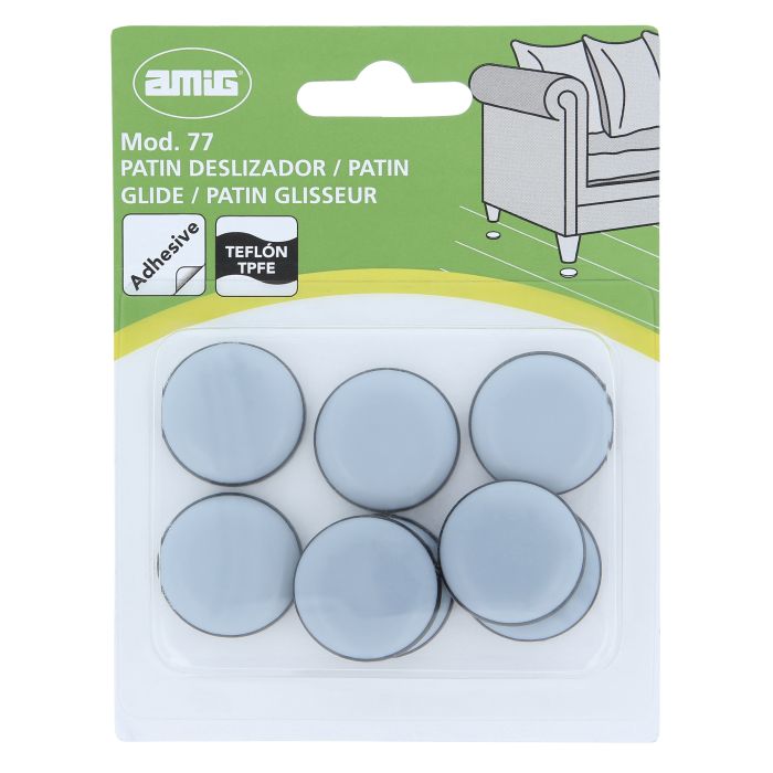 O Patim Deslizante Mod. 77 é um acessório prático e eficiente para facilitar o deslizamento de móveis sobre diversas superfícies. Fabricado em teflon adesivo, proporciona um movimento suave e sem esforço, ao mesmo tempo que amortece o ruído e protege o pavimento contra riscos e desgaste. A sua aplicação é simples e rápida, bastando colar na base dos móveis, sem necessidade de ferramentas adicionais. Ideal para uso em cadeiras, mesas, sofás e outros móveis que necessitam de mobilidade frequente.