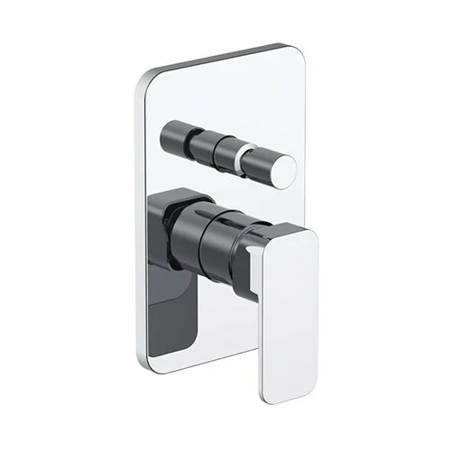 Misturadora de encastrar cromada com duas vias, ideal para banheira ou duche com chuveiro e ducho de mão.