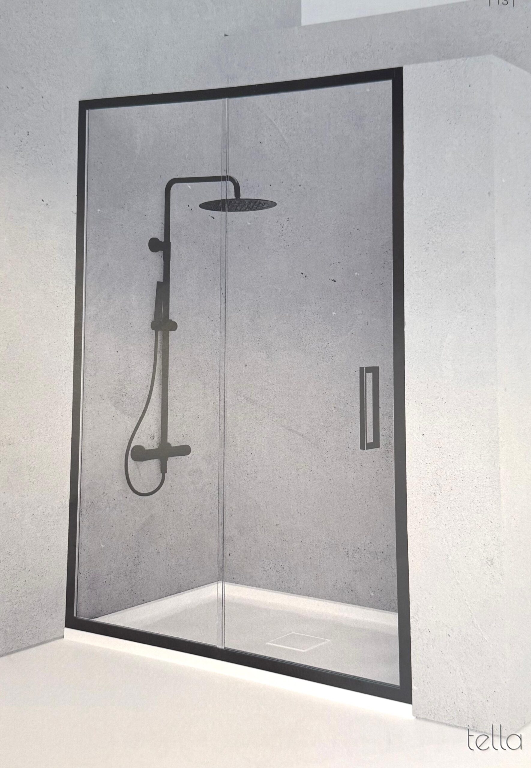 Vidro temperado | Estrutura preta | 2 portas de correr | Frontal 130-135 cm ajustável | Perfil em alumínio anodizado | Instalação reversível | Design moderno | PAULISANI